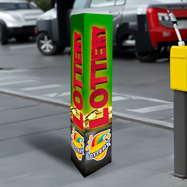 Bollards are showing up more and more outside of store fronts, this has created an opportunity for advertising. Our Post Cover signs are made out of sturdy 4mm coroplast that is scored to make an upright triangle that can fit around a bollard. The three 46” x 12” exterior sides are custom printed and include double-faced tape on the narrow panel which holds the triangle closed.