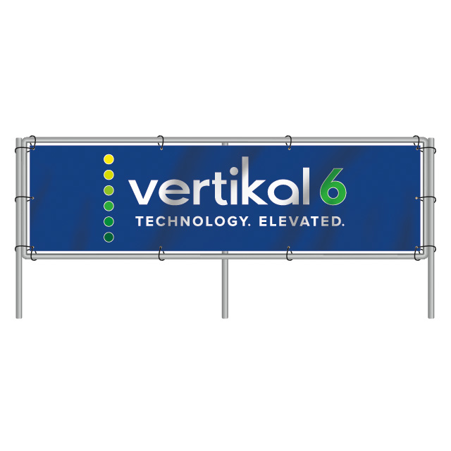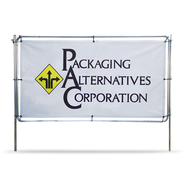 Easy to assemble and made from corrosion-resistant aluminum tubing, a tensional bungee system secures your banner and reduces wind load. Frame secures to the ground with fiberglass ground stakes.