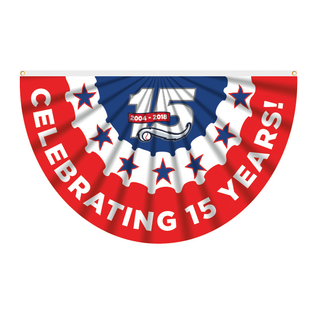 Customize this unique 3-D pleated appearance design with your logo or slogan and color scheme . The Mirage Fan Bunting is printed on polyester flag cloth and finished with a hem and a flag style header with grommets.