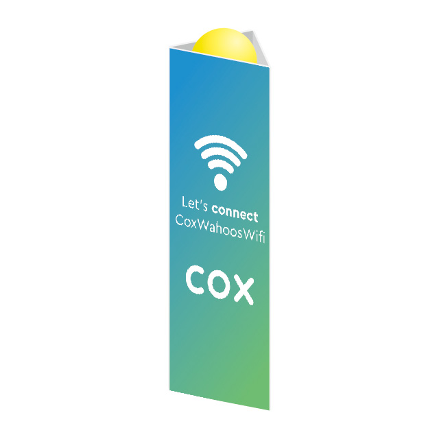 Bollards are showing up more and more outside of store fronts, this has created an opportunity for advertising. Our Post Cover signs are made out of sturdy 4mm coroplast that is scored to make an upright triangle that can fit around a bollard. The three 46” x 12” exterior sides are custom printed and include double-faced tape on the narrow panel which holds the triangle closed.