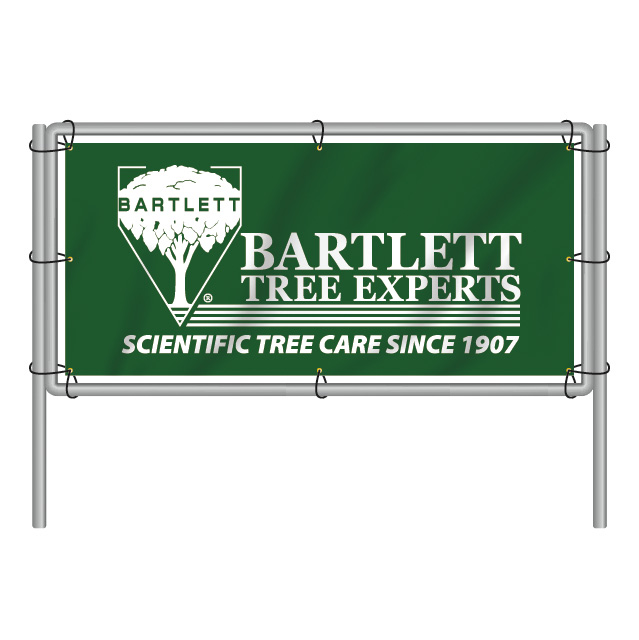 Easy to assemble and made from corrosion-resistant aluminum tubing, a tensional bungee system secures your banner and reduces wind load. Frame secures to the ground with fiberglass ground stakes.