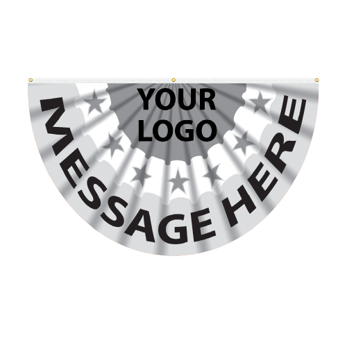 Customize this unique 3-D pleated appearance design with your logo or slogan and color scheme . The Mirage Fan Bunting is printed on polyester flag cloth and finished with a hem and a flag style header with grommets.